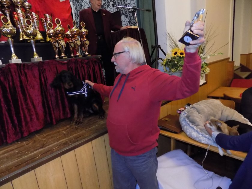 Ein Ehrenpreis für den jüngsten ausgestellten Hund...