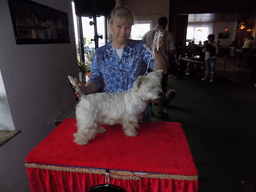 Ein Ehrenpreis für den jüngsten ausgestellten Hund...